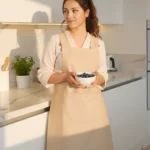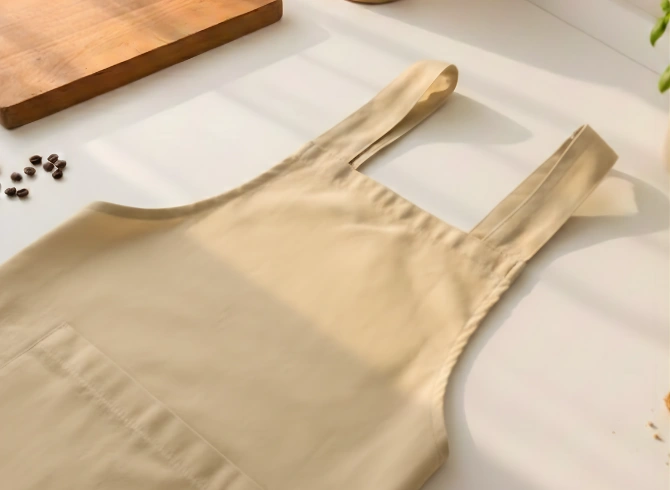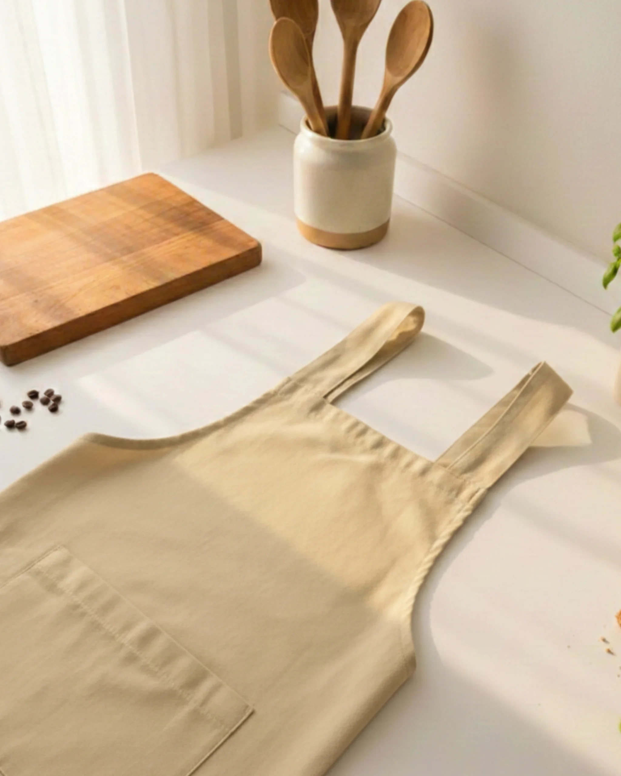 Simplicité et caractère définissent ce tablier beige au design épuré. Son style minimaliste et intemporel apporte une touche douce, naturelle et raffinée à votre cuisine. Sa teinte sable lumineuse réchauffe l’espace avec subtilité. Sa coupe droite moderne structure la silhouette avec élégance, tandis que sa grande poche centrale allie praticité et harmonie visuelle.
