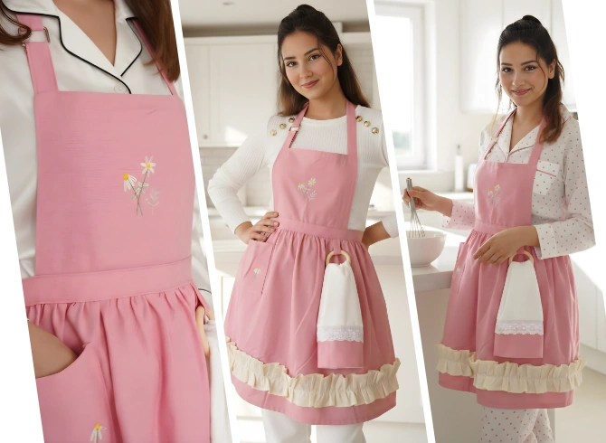 Élégance et finesse se rencontrent dans ce tablier floral au charme couture. La broderie délicate et l’anneau décoratif apportent une touche originale qui attire le regard, tandis que la coupe ajustée épouse naturellement la silhouette. Pensé pour celles qui aiment allier style et praticité, il transforme chaque instant passé en cuisine en une expérience raffinée et inspirante.