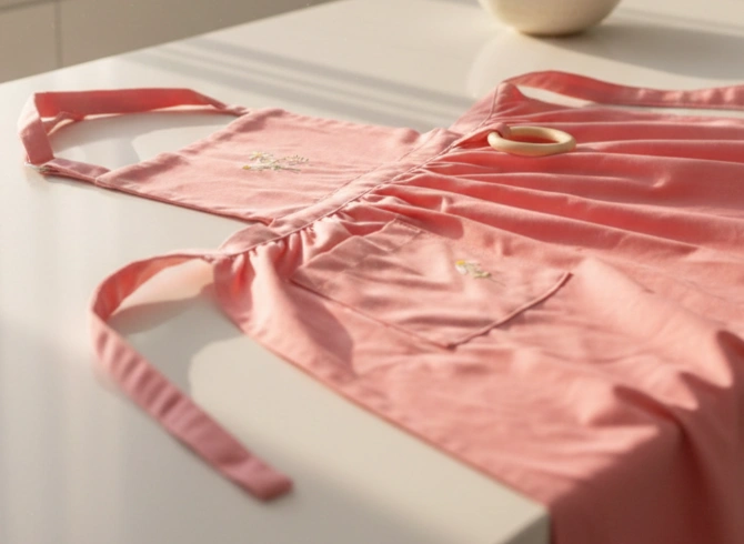 • Contrairement aux tabliers standards souvent uniformes ou peu travaillés, celui-ci se distingue par ses détails couture uniques.